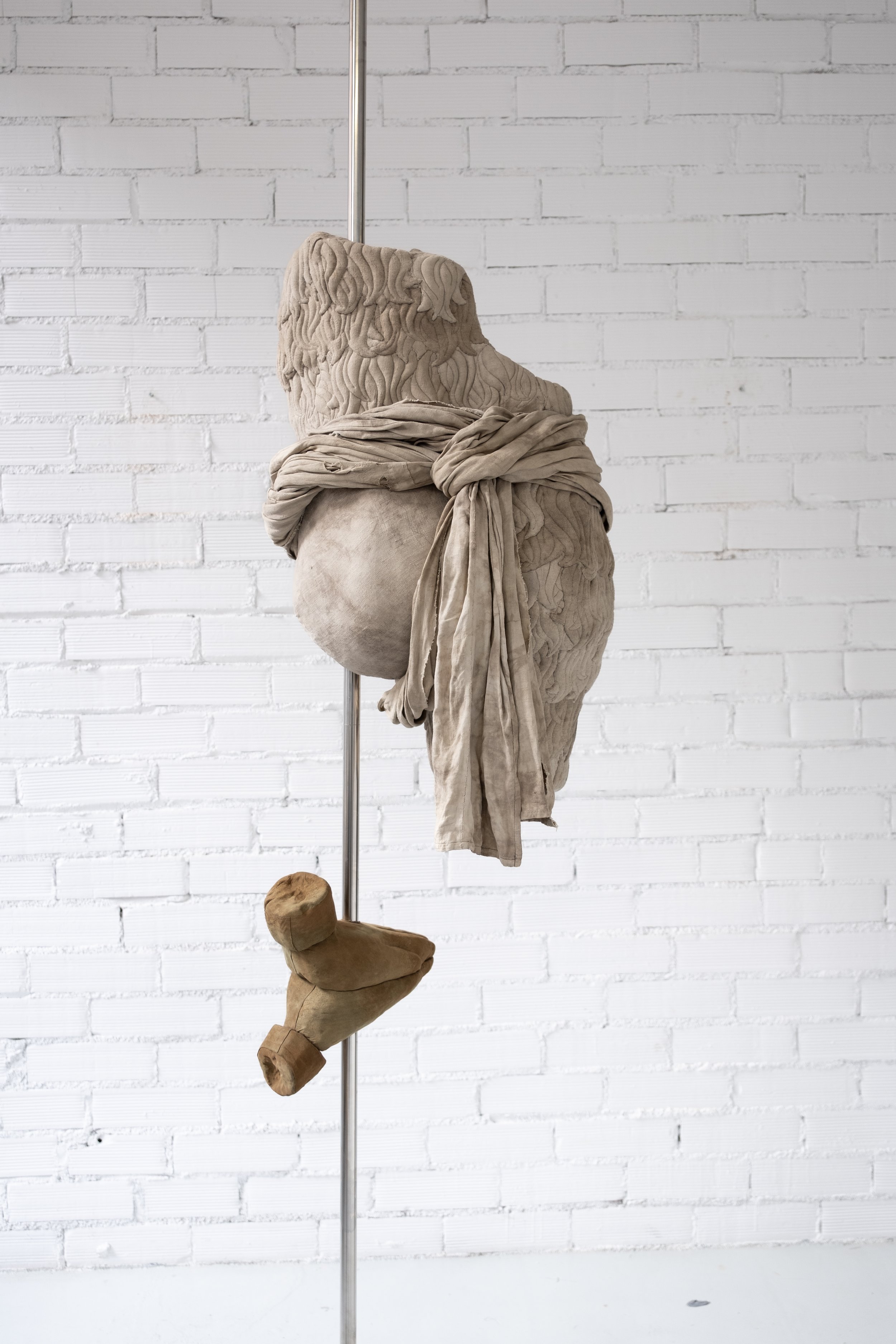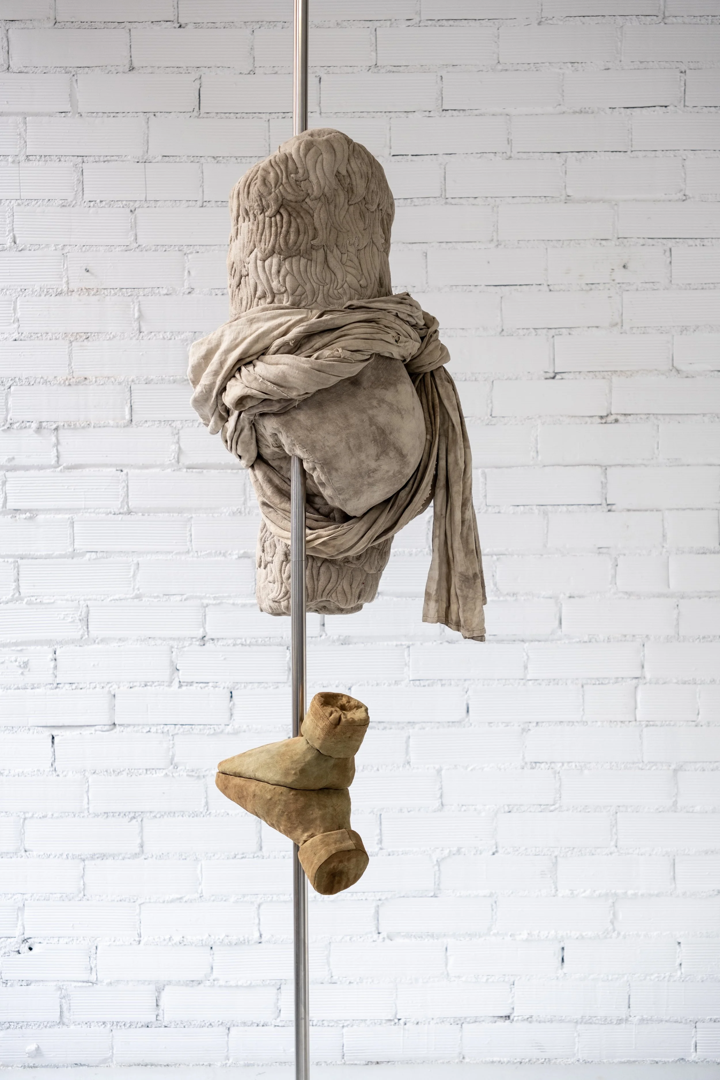plant-dyed antique linen, leather, acrylic resine and stainless-steel H.235 x W.60 x L.60 cm